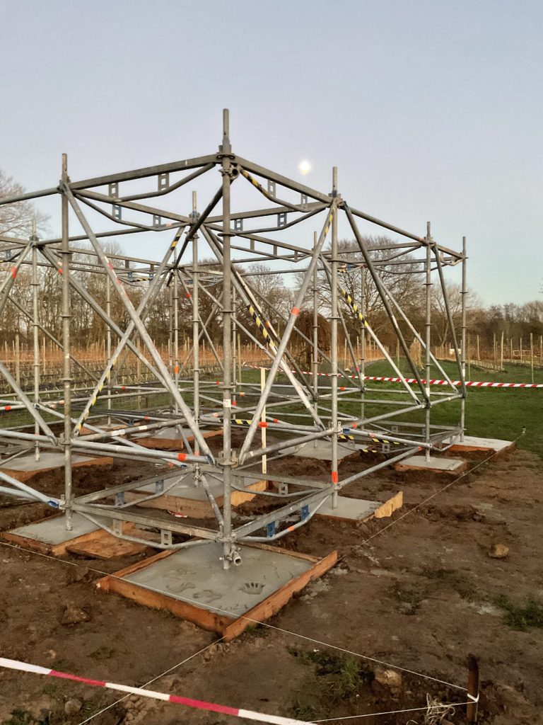 Der „Turmbau zu B.“ hat begonnen! 6. Dezember 2021 Veröffentlicht am 11. Januar 202216 Punktfundamente á ca. 1 ccm müssen ausgehoben werden.5,5×5,5 m Gestänge werden einbetoniert.